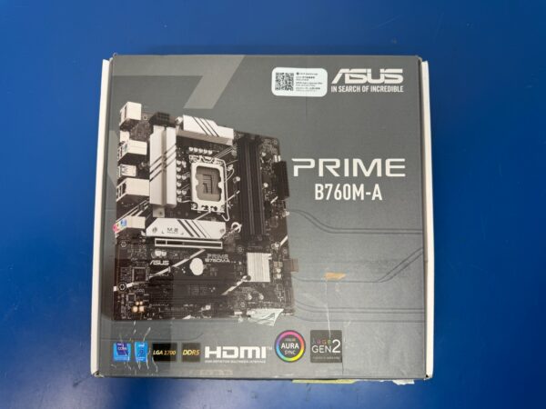 ASUS PRIME B760M-A Intel B760(LGA1700)(13th and 12th Gen)mATX motherboard,PCIe 4.0,DDR5, 2xM.2 slots,2.5Gb LAN, DP, Dual HDMI®, SATA 6 Gbps, rear USB 3.2 Gen 2, front USB 3.2 Gen 1 Type-C®, Aura Sync