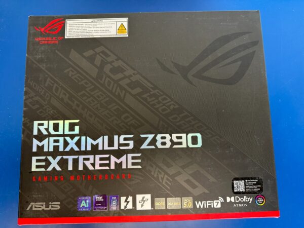 Pristine condition never used open box. Professionally tested to ensure 100% functionality. Learn more about ASUS MAXIMUS Z890 EXTREME Model Brand ASUS Model MAXIMUS Z890 EXTREME Supported CPU CPU Socket Type LGA 1851 CPU Type Intel Core Ultra Processors (Series 2) Chipsets Chipset Intel Z890 Memory Number of Memory Slots 4x288pin (DDR5) Memory Standard DDR5 4400 / DDR5 4800 / DDR5 5000 / DDR5 5200 / DDR5 5400 / DDR5 5600 / DDR5 5800 / DDR5 6000 / DDR5 6200 / DDR5 6400 / DDR5 6600 / DDR5 6800 / DDR5 7000 / DDR5 7200 / DDR5 7400 / DDR5 7600 / DDR5 7800 / DDR5 7900 / DDR5 7950 / DDR5 8000 / DDR5 8200 / DDR5 8266 / DDR5 8400 / DDR5 8600 / DDR5 8666 / DDR5 8800 / DDR5 8933 / DDR5 9000 / DDR5 9066 / DDR5 9200 Maximum Memory Supported 192GB Channel Supported Dual Channel Memory Feature Support up to 9200+MT/s (OC), Non-ECC, Un-buffered ,Clocked Unbuffered DIMM (CUDIMM)* Dual Channel Memory Architecture Supports Intel Extreme Memory Profile (XMP) memory module ASUS Enhanced Memory Profile III (AEMP III) Supports DIMM Flex DIMM Fit NitroPath DRAM Technology * Non-ECC, un-buffered DDR5 memory supports On-Die ECC function. Expansion Slots PCI Express 5.0 x16 Intel Core Ultra Processors (series 2)* 2 x PCIe 5.0 x16 slots (supports x16 or x8/x8 or x8/x4/x4 modes)** PCI Express x4 Intel Z890 Chipset** 1 x PCIe 4.0×4 slot**M.2_3 & M.2_4 share bandwidth with PCIEX16(G5)_2. When M.2_3 is enabled, PCIEX16(G5)_1 will run x8 & PCIEX16(G5)_2 will run x4. When M.2_3 & M.2_4 are enabled, PCIEX16(G5)_1 will run x8 & PCIEX16(G5)_2 will disabled.