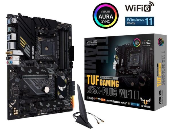 Missing i/o shield, p ristine condition never used open box. Professionally tested to ensure 100% functionality. Learn more about ASUS TUF GAMING B550-PLUS WIFI II Model Brand ASUS Model TUF GAMING B550-PLUS WIFI II Supported CPU CPU Socket Type AM4 CPU Type Supports AMD Ryzen 5000 Series / 5000 G-Series / 4000 G-Series / 3000 Series Processors ** Refer to www.asus.com for CPU support list. Chipsets Chipset AMD B550 Memory Number of Memory Slots 4×288pin Memory Standard DDR4 4866(OC) / 4800(OC) / 4600(OC) / 4466(OC) / 4400(OC) / 4333(OC) / 4266(OC) / 4200(OC) / 4133(OC) / 4000(OC) / 3866(OC) / 3733(OC) / 3600(OC) / 3466(OC) / 3400(OC) / 3333(OC) / 3200 / 3000 / 2933 / 2800 / 2666 / 2400 / 2133** Refer to www.asus.com for the Memory QVL (Qualified Vendors Lists), and memory frequency support depends on the CPU types. Maximum Memory Supported 128GB Channel Supported Dual Channel ECC Supported ECC Memory (ECC mode) support varies by CPU. Buffer Supported Un-buffered Expansion Slots PCI Express 4.0 x16 1 x PCI Express 4.0 x16** Actual support may vary by CPU.. PCI Express 3.0 x16 1 x PCI Express 3.0 x16** Supports x4 mode. PCI Express x1 3 x PCIe 3.0 x1 ** PCIE 3.0 X16_2 runs x1 mode when any of the PCIe 3.0 x1 slots is occupied. Storage Devices SATA 6Gb/s 6 x SATA 6Gb/s M.2 AMD Ryzen 5000 Series / 3000 Series Desktop Processors:M.2_1 slot (Key M), type 2242/2260/2280/22110 (supports PCIe 4.0 x4 & SATA modes)AMD Ryzen 5000 G-Series / 4000 G-Series Desktop Processors:M.2_1 slot (Key M), type 2242/2260/2280/22110 (supports PCIe 3.0 x4 & SATA modes)AMD B550 Chipset:M.2_2 slot (Key M), type 2242/2260/2280/22110 (supports PCIe 3.0 x4 & SATA modes)** M2_2 shares bandwidth with SATA6G_56. When M.2_2 is populated, SATA6G_56 will be disabled. SATA RAID 0/1/10 Onboard Video Onboard Video Chipset Supported only by CPU with integrated graphic Onboard Audio Audio Channels 7.1 Channels Onboard LAN LAN Chipset Realtek 2.5Gb Ethernet Max LAN Speed 10/100/1000/2500Mbps Wireless LAN Wi-Fi 6802.11a/b/g/n/ac/ax Bluetooth Bluetooth 5.2 Rear Panel Ports Back I/O Ports 2 x USB 3.2 Gen 2 ports (1 x Type-A + 1 x USB Type-C)4 x USB 3.2 Gen 1 ports (4 x Type-A)2 x USB 2.0 ports (2 x Type-A) 1 x DisplayPort1 x HDMI port1 x ASUS Wi-Fi Module1 x Realtek 2.5Gb Ethernet port5 x Audio jacks 1 x Optical S/PDIF out port1 x BIOS FlashBack button Internal I/O Connectors Onboard USB 1 x USB 3.2 Gen 1 header(s) support(s) additional 2 USB 3.2 Gen 1 ports2 x USB 2.0 header(s) support(s) additional 4 USB 2.0 ports Other Connectors Fan and Cooling related 1 x 4-pin CPU Fan header(s)1 x 4-pin CPU OPT Fan header(s)1 x 4-pin AIO Pump header(s)3 x 4-pin Chassis Fan header(s)Miscellaneous2 x AURA Addressable Gen 2 header(s)2 x AURA RGB header(s)1 x Clear CMOS header1 x COM Port header1 x Front Panel Audio header (AAFP) 1 x SPI TPM header (14-1pin)1 x 20-3 pin System Panel header 1 x Thermal Sensor header1 x Thunderbolt header Physical Spec Form Factor ATX LED Lighting RGB Dimensions (W x L) 12.0″ x 9.6″ Power Pin 1 x 24-pin Main Power connector1 x 8-pin +12V Power connector Windows 11 Compatibility Windows 11 Ready Features Features Special Features:ASUS TUF PROTECTION- ASUS DIGI+ VRM (Digital power design with Dr. MOS)- ASUS Enhanced DRAM Overcurrent Protection- ASUS ESD Guards- TUF LANGuard- ASUS Overvoltage Protection- ASUS SafeSlot- ASUS Stainless-Steel Back I/OASUS Q-Design – ASUS Q-DIMM- ASUS Q-LED (CPU [red], DRAM [yellow], VGA [white], Boot Device [yellow green])- ASUS Q-SlotASUS Thermal Solution- Aluminum M.2 heatsink ASUS EZ DIY- BIOS FlashBack button- BIOS FlashBack LED- ProcoolAURA Sync- AURA RGB header(s)- Addressable Gen 2 RGB header(s)Software Features:ASUS Exclusive SoftwareArmoury Crate- Aura Sync- Two-Way AI Noise CancelationAI Suite 3- Performance And Power Saving Utility TurboV EVO EPU Digi+ VRM Fan Xpert 4 PC Cleaner- EZ update- System InformationAura CreatorTUF GAMING CPU-ZDTS Custom for GAMING HeadsetsNorton Anti-virus software (Free Trial for 60 days) WinRARUEFI BIOSASUS EZ DIY – ASUS CrashFree BIOS 3 – ASUS EZ Flash 3 – ASUS UEFI BIOS EZ ModeBIOS:256 Mb Flash ROM, UEFI AMI BIOSManageability:WOL by PME, PXE Operating System:Windows 10 64-bit, Windows 11 64-bit