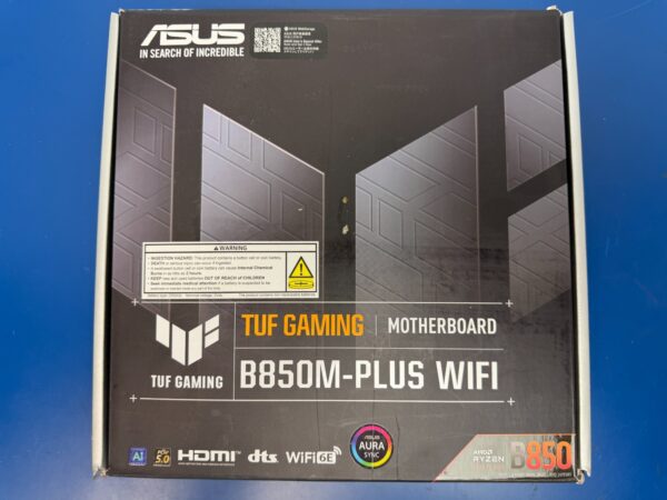 Learn more about ASUS TUF GAMING B850M-PLUS WIFI Model Brand ASUS Model TUF GAMING B850M-PLUS WIFI Part Number 90MB1IY0-M0AAY0 Supported CPU CPU Socket Type AM5 CPU Type Ryzen 7000 Series / Ryzen 8000 Series / Ryzen 9000 Series Chipsets Chipset AMD B850 Memory Number of Memory Slots 4x288pin (DDR5) Memory Standard Up to 8000+MT/s (OC) Maximum Memory Supported 192GB Channel Supported Dual Channel ECC Supported Yes Buffer Supported Un-buffered Memory Feature Dual channel memory architecture Supports AMD Extended Profiles for Overclocking (EXPO) ASUS Enhanced Memory Profile (AEMP) Expansion Slots PCI Express 5.0 x16 AMD Ryzen 9000 & 7000 Series Desktop Processors 1 x PCIe 5.0 x16 slot (supports x16 mode) PCI Express 4.0 x16 AMD Ryzen 8000 Series Desktop Processors 1 x PCIe 4.0 x16 slot (supports x8/x4 mode) PCI Express x1 AMD B850 Chipset 1 x PCIe 4.0 x1 slot Storage Devices SATA 6Gb/s 4 x SATA 6Gb/s M.2 AMD Ryzen 9000 & 7000 Series Desktop Processors M.2_1 slot (Key M), type 2280 (supports PCIe 5.0 x4 mode) M.2_2 slot (Key M), type 2242/2260/2280 (supports PCIe 4.0 x4 mode)AMD Ryzen 8000 Series Desktop Processors M.2_1 slot (Key M), type 2280 (supports PCIe 4.0 x4 mode) M.2_2 slot (Key M), type 2242/2260/2280 (supports PCIe 4.0 x4/x2 mode)**