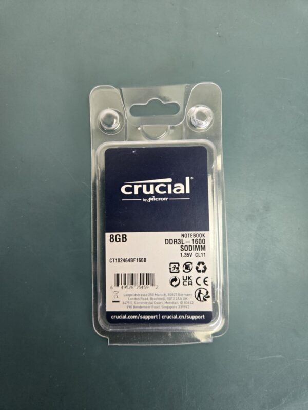 Crucial 8GB PC3L-12800 DDR3L-1600 CL11 Laptop Memory CT102464BF160B.M16FP