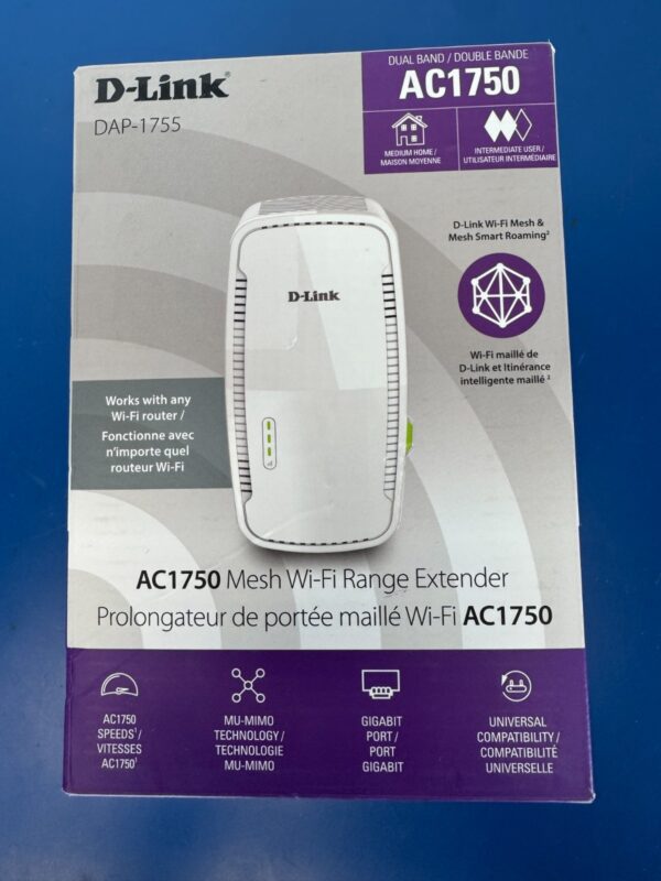 Bring a wireless signal to every nook and corner of your home with the D-Link AC1750 mesh dual-band Wi-Fi range extender. It uses mesh technology to cover up to 2,000 sq. ft. and offers a combined speed of up to 1,750Mbps to ensure lightning-fast download times. The D-Link Wi-Fi app makes it easy to set up and manage the router.Features:- Pair with a compatible D-Link Wi-Fi Mesh router to create a seamless mesh network