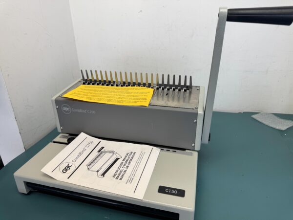 Manual binding machine handles standard letter-size documents while open-end throat allows punching of legal and odd-size sheets. Punch up to 20 sheets at a time. Bind documents up to 2″ (500 sheets) with plastic combs. Binding machine offers a durable all-metal construction.