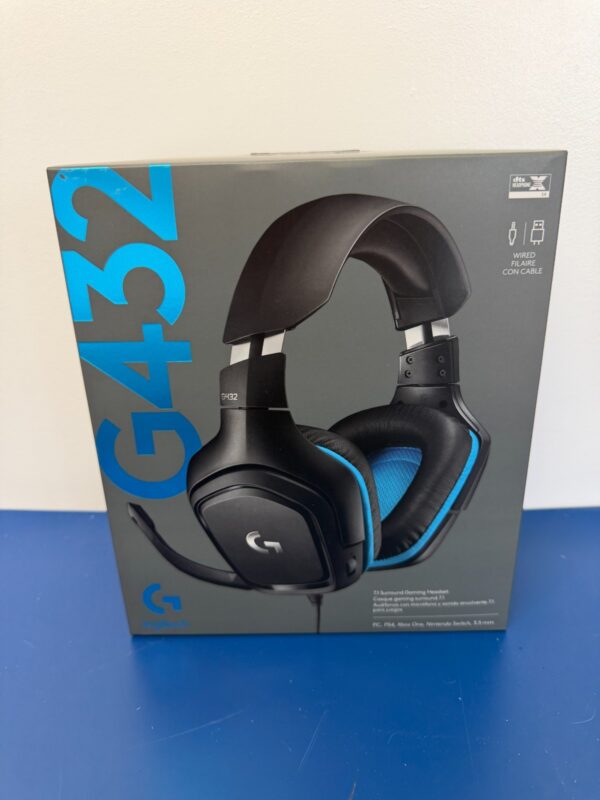 Logitech G432 Wired Gaming Headset, 7.1 Surround Sound, DTS Headphone:X 2.0, Flip-To-Mute Mic, PC (Leatherette) Black/Blue