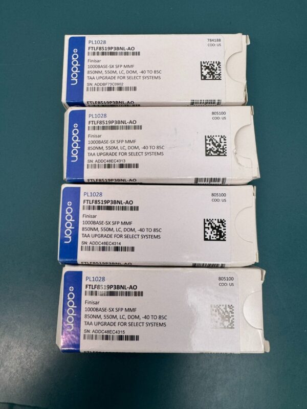 | AddOn Finisar FTLF8519P3BNL Compatible TAA Compliant 1000Base-SX SFP Transceiver (MMF, 850nm, 550m, LC, DOM) – 100% compatible and guaranteed to work | |
