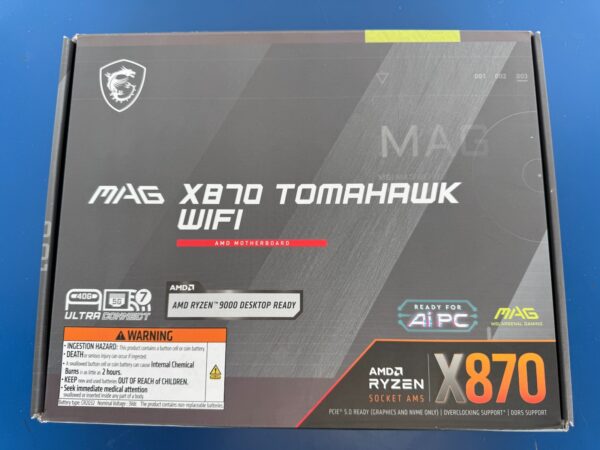 MISSING ONE OF THE M.2 Heatsink! Otherwise Pristine condition never used open box. Professionally tested to ensure 100% functionality. Learn more about MSI MAG X870 TOMAHAWK WIFI Model Brand MSI Model MAG X870 TOMAHAWK WIFI Supported CPU CPU Socket Type AM5 CPU Type Ryzen 7000 Series / Ryzen 8000 Series / Ryzen 9000 Series Chipsets Chipset AMD X870 Memory Number of Memory Slots 4x288pin (DDR5) Memory Standard DDR5 4800 / DDR5 5000 / DDR5 5200 / DDR5 5400 / DDR5 5600 / DDR5 5800 / DDR5 6000 / DDR5 6200 / DDR5 6400 / DDR5 6600 / DDR5 6800 / DDR5 7000 / DDR5 7200 / DDR5 7400 / DDR5 7600 / DDR5 7800 / DDR5 7900 / DDR5 7950 / DDR5 8000 / DDR5 8200 / DDR5 8266 / DDR5 8400 Maximum Memory Supported 256GB Channel Supported Dual Channel ECC Supported Non-ECC Buffer Supported Un-buffered Expansion Slots PCI Express 5.0 x16 PCI_E1 slot (From CPU) Supports up to PCIe 5.0 x16 PCI Express x4 PCI_E3 slot (From Chipset X870) Supports up to PCIe 4.0 x4 PCI Express x1 PCI_E2 slot (From Chipset X870) Supports up to PCIe 3.0 x1 Storage Devices SATA 6Gb/s 4 x SATA 6Gb/s M.2 M2_1 slot (From CPU) – Supports up to PCIe 5.0 x4 – Supports 2280/110 storage devices M2_2 slot (From CPU) – Supports up to PCIe 5.0 x4 – Supports 2260/80 storage devices M2_3 slot (From Chipset) – Supports up to PCIe 4.0 x2 – Supports 2260/80 storage devices M2_4 slot (From Chipset) – Supports up to PCIe 4.0 x4 – Supports 2260/80 storage devices * The M2_2 slot will be unavailable when using Ryzen 5 8500G processor. ** PCI_E3 slot will run at x2 speed when installing device in the M2_3 slot SATA RAID Supports RAID 0, RAID 1 and RAID 10 for M.2 NVMe storage devices Onboard Audio Audio Chipset Realtek ALC4080 Audio Channels 7.1 Channels Onboard LAN LAN Chipset Realtek 8126-VB Max LAN Speed 5Gbps Wireless LAN Wi-Fi 802.11 be Bluetooth Bluetooth 5.4 Rear Panel Ports Back I/O Ports 1 x Flash BIOS button 1 x Clear CMOS button 1 x HDMI port 1 x USB 10Gbps Type-A (From CPU) 1 x USB 10Gbps Type-A (From X870 chipset) 1 x USB 10Gbps Type-C (From X870 chipset) 2 x USB 40Gbps Type-C (From ASM4242) 3 x USB 5Gbps Type-A (From GL3523) 4 x USB 2.0 Type-A ports (From GL850) 1 x 5Gbps LAN (RJ45) port 2 x Wi-Fi Antenna connectors 2 x audio jacks 1 x Optical S/PDIF Out connector Internal I/O Connectors Onboard USB AMD X870 Chipset – 1 x USB 20Gbps Type-C front panel port with Power Delivery Supports up to 27W fast charging – 2 x USB 5Gbps connectors Supports additional 4 USB 5Gbps ports – 2 x USB 2.0 connectors Supports additional 4 USB 2.0 ports Other Connectors Fan Connectors – 1x 4-pin CPU fan connector – 6x 4-pin system fan connectors – 1x 4-pin water-pump/ system fan connector – 1x EZ Conn-Header V2 (JAF_2 with 11-Pin)System Connectors – 1x Front panel audio connector – 2x System panel connectors – 1x Chassis Intrusion connector – 1x TPM module connector