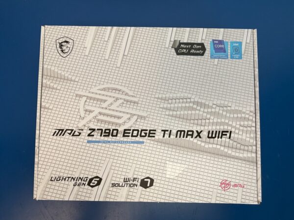 Pristine condition never used open box. Professionally tested to ensure 100% functionality. Bios updated to latest. Learn more about MSI MPG Z790 EDGE TI MAX WIFI Model Brand MSI Model MPG Z790 EDGE TI MAX WIFI Supported CPU CPU Socket Type LGA 1700 CPU Type Supports 12th/13th Gen Intel Core Processors, Pentium Gold and Celeron Processors Chipsets Chipset Intel Z790 Memory Number of Memory Slots 4x288pin (DDR5) Memory Standard Memory Support 7800+(OC)/ 7600(OC)/ 7400(OC)/ 7200(OC)/ 7000(OC)/ 6800(OC)/ 6600(OC)/ 6400(OC)/ 6200(OC)/ 6000(OC)/ 5800(OC)/ 5600(JEDEC)/ 5400(JEDEC)/ 5200(JEDEC)/ 5000(JEDEC)/ 4800(JEDEC) MHz Max. overclocking frequency: – 1DPC 1R Max speed up to 7800+ MHz – 1DPC 2R Max speed up to 6600+ MHz – 2DPC 1R Max speed up to 6400+ MHz – 2DPC 2R Max speed up to 5600+ MHz Maximum Memory Supported 192GB Channel Supported Dual Channel Memory Feature Supports Intel XMP3.0 OC Supports Dual-Controller Dual-Channel mode Supports non-ECC, un-buffered memory Expansion Slots PCI Express 5.0 x16 PCI_E1 Gen PCIe 5.0 supports up to x16 (From CPU) PCI Express 4.0 x16 PCI_E3 Gen PCIe 4.0 supports up to x4 (From Chipset) PCI Express x1 PCI_E2 Gen PCIe 3.0 supports up to x1 (From Chipset) Storage Devices SATA 6Gb/s 8 x SATA 6Gb/s M.2 5x M.2 M.2_1 Source (From CPU) supports up to PCIe 5.0 x4 , supports 22110/2280/2260 devices M.2_2 Source (From Chipset) supports up to PCIe 4.0 x4 , supports 2280/2260 devices M.2_3 Source (From Chipset) supports up to PCIe 4.0 x4 / SATA mode, supports 2280/2260/2242 devices M.2_4 Source (From Chipset) supports up to PCIe 4.0 x4 , supports 2280/2260/2242 devices M.2_5 Source (From Chipset) supports up to PCIe 4.0 x4 , supports 2280/2260 devices SATA RAID Supports RAID 0, RAID 1, RAID 5 and RAID 10 for SATA storage devices Supports RAID 0, RAID 1, RAID 5 and RAID 10 for M.2 NVMe storage devices Onboard Audio Audio Chipset Realtek ALC4080 Codec 7.1-Channel USB High Performance Audio Supports up to 32-Bit/384 kHz playback on front panel Audio Channels 7.1 Channels Onboard LAN LAN Chipset Intel 2.5Gbps LAN Max LAN Speed 2.5Gbps Wireless LAN Wi-Fi 7 Solution The Wireless module is pre-installed in the M.2 (Key-E) slot Supports MU-MIMO TX/RX, 2.4GHz / 5GHz / 6GHz* (160MHz) up to 5.8Gbps Supports 802.11 a/ b/ g/ n/ ac/ ax Supports Bluetooth 5.4**, MLO, 4KQAM* 6GHz band support may depend on every country’s regulations and Wi-Fi 7 will be ready in Windows 11 SV3. ** The Bluetooth version may be updated, please refer to the Wi-Fi chipset vendor’s website for details. Bluetooth 5.4 support schedule depends on MSFT Windows 11 plan.