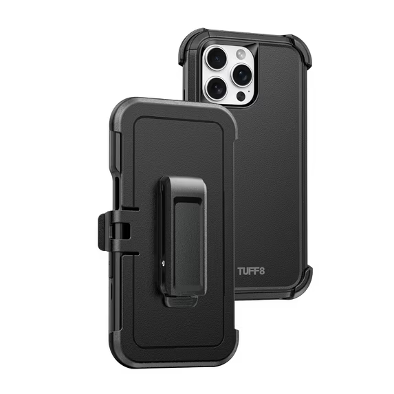 Tuff8 Impact+ 14 Foot Military Drop-Tested Protective Triple-Layer Case With Holster Compatible With Iphone 16 Pro Max Black